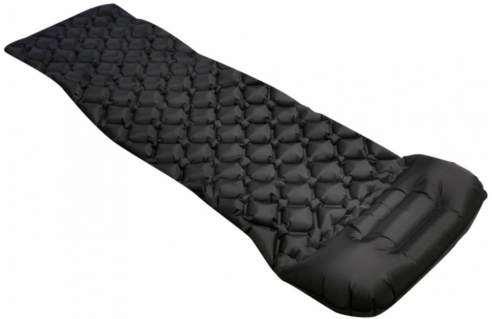 Výběr správné podložky na spaní je velmi důležitý, zodpovídá především za kvalitu našeho spánku. Správná karimatka na spaní musí být především pohodlná, nesmí v batohu zabírat mnoho místa a musí dobře izolovat od studené nebo mokré země.Speciální design, díky kterému se karimatka skládá z mnoha malých vzduchových polštářů, zajišťuje vysoký komfort na jakémkoli povrchu - na trávě, písku a kdekoli jinde, kde je potřeba pohodlí. S touto podložkou na spaní také můžete zapomenout na přibalování dalšího polštáře - karimatka má již zabudovaný nafukovací polštář. Snížíte tak množství věcí na balení a zvýšíte kvalitu spánku.Materiál, ze kterého je karimatka vyrobena, zajišťuje vynikající kvalitu použití za všech podmínek. Při spánku na něm bude tělo dokonale izolováno od studené země a svaly se budou moci uvolnit.Pro složení matrace stačí otevřít ventil, srolovat výrobek a vložit do potahu.Sada obsahuje:turistická podložkaobalČerná barvaRozměry:Turistická podložka: 190 cm x 60 cm x 6 cmBalení: 23 cm x 14 cm x 6 cm
