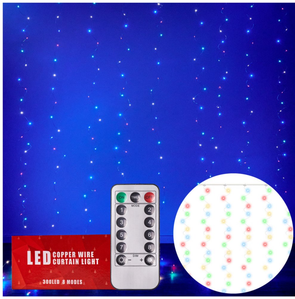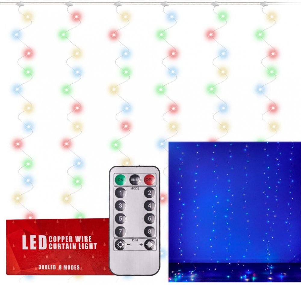 LED SVĚTLA OPONY 3X3M 300LED MULTICOLOURPŘENESTE KOUZLO VÁNOC DO SVÉHO PROSTORU!Jedinečná světla, která dodají jiskru každému interiéru!Díky pestrým barvám vnesou světla do vašeho pokoje vánoční kouzlo.Závěs se skvěle hodí jako jedinečná vánoční dekorace, například k ozdobení okna nebo stěny. Světla lze však použít i v jiných ročních obdobích, zejména jako jemné, romantické osvětlení obývacího pok...