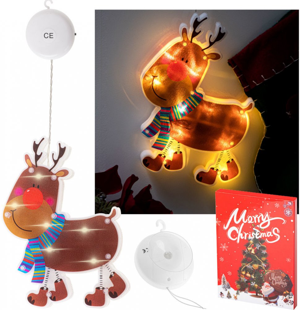 Příjemná světýlka uvnitř dekorace představí vánoční kouzlo.Svítidla budou v okně vypadat krásně a jistě přitáhnou pozornost každého člověka. Kdo ví, možná dokonce povzbudí Santu, aby dorazil dříve!Dekorace je oboustranná - bude vypadat fantasticky na obou stranách okna.Je fantastická jako náhrada klasické dětské noční lampičky, poskytuje příjemné osvětlení, které zabalí děti ke spánku zimních nocí.Dekorace je napájena bateriemi, díky čemuž je snadné ji kdekoli zapnout bez zbytečných kabelů. Baterie jsou navíc zakryté víkem, které zajistí bezpečnost dětí. A samotná přihrádka na baterie je také držák vybavený přísavkou.Dekorace se snadno instaluje - stačí ji připevnit pomocí přísavky například na okno, dveře nebo zeď!Lampa pro vnitřní použití.Napájení: 3 AAA baterie (nejsou součástí balení)Montáž: na přísavkuRozměry: Délka napájecího kabelu: 15 cm Santa (výška x šířka x tloušťka): 23 cm x 15,5 cm x 2 cm