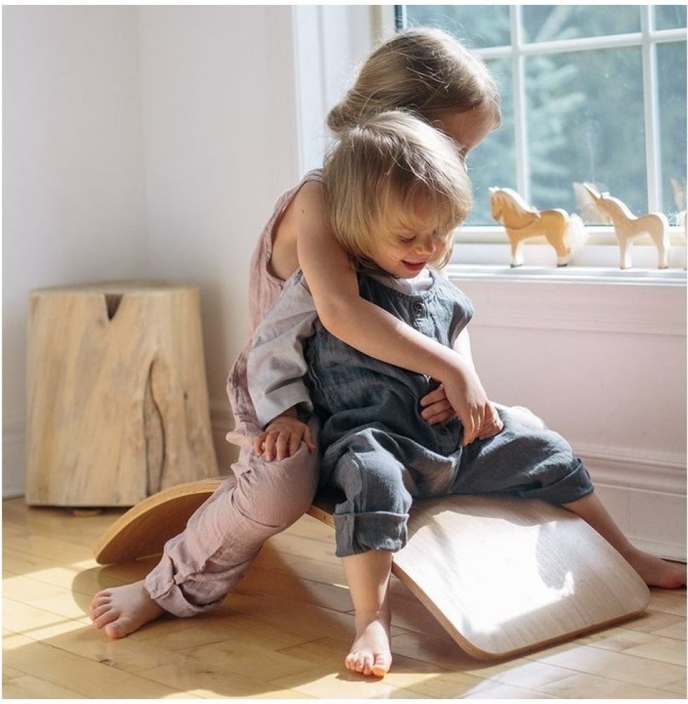 Balanční deska je jednoduchá, ale velmi všestranná hračka, která nabízí zábavu i cvičení zároveň. V souladu s principy, které vypracovala Maria Montessori, tato hračka podporuje vývoj dítěte díky své jednoduchosti. Balanční deska slouží nejen jako cvičební pomůcka, ale také jako stolička, houpačka, nebo dokonce závodní dráha pro autíčka. Tato skvělá hračka podporuje rovnováhu, koordinaci a celkové rozvíjení pohybových dovedností.