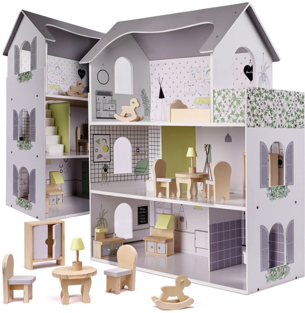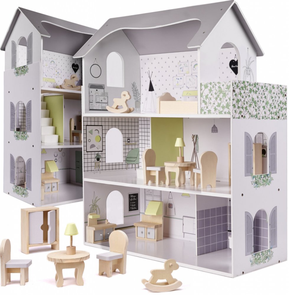 Krásný dřevěný domeček pro panenky v moderním stylu bude splněným snem každého dítěte!