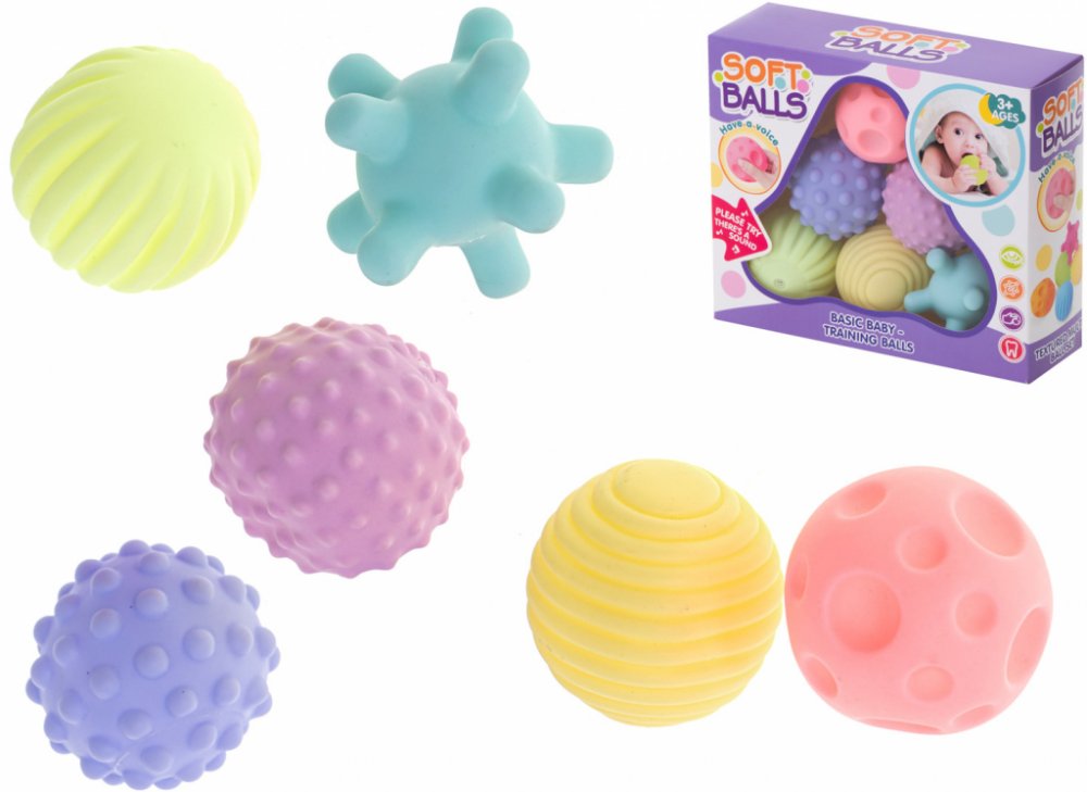 Každý míček je navíc vybaven pískátkem, které stimuluje sluch.