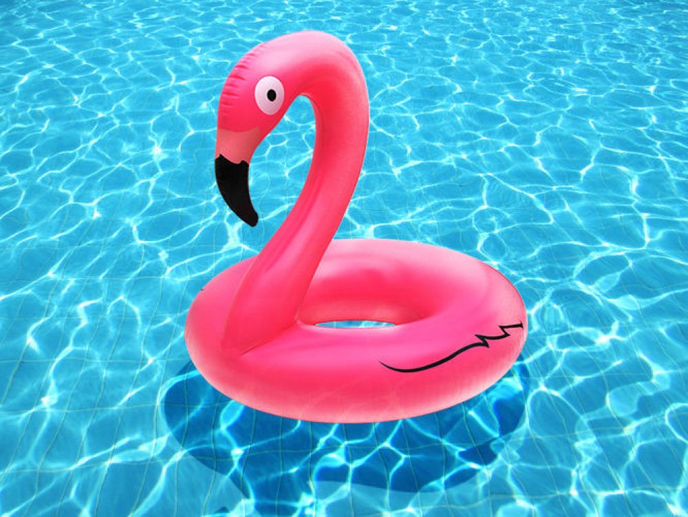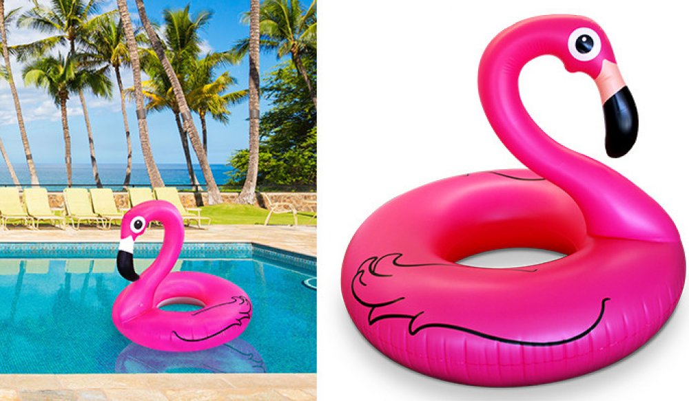 Barevné nafukovací kolo ve tvaru plameňáka plameňák, vyrobený z vysoce kvalitního plastu PVC pro dlouhou životnost.