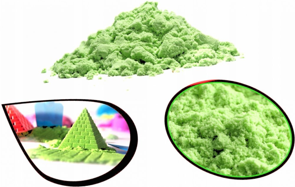 Hra s kinetickým pískem je velmi příjemná, písek se snadno modeluje. Použití patentované technologie založené na přidání netoxického polymeru do čistého písku, který spojuje jednotlivá zrnka písku dohromady (nikdy se nerozsypou), je ideální pro hru doma, ve školce nebo v pracovnách ergoterapie.