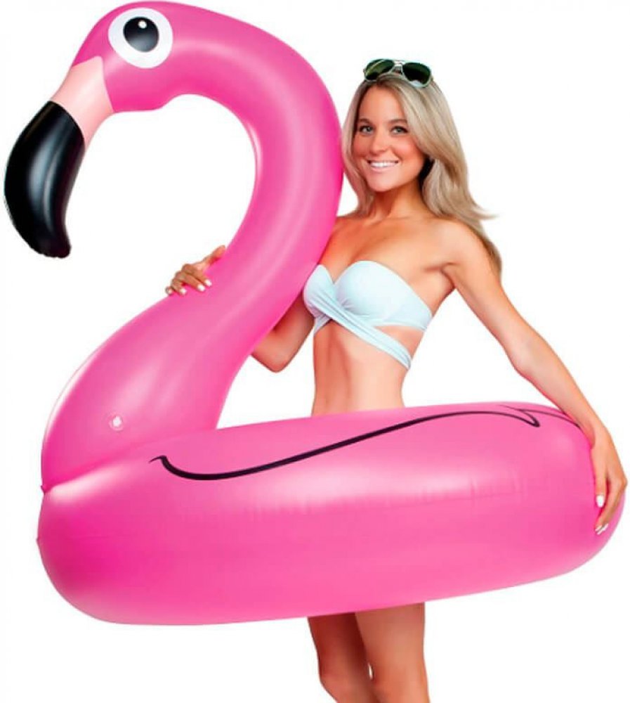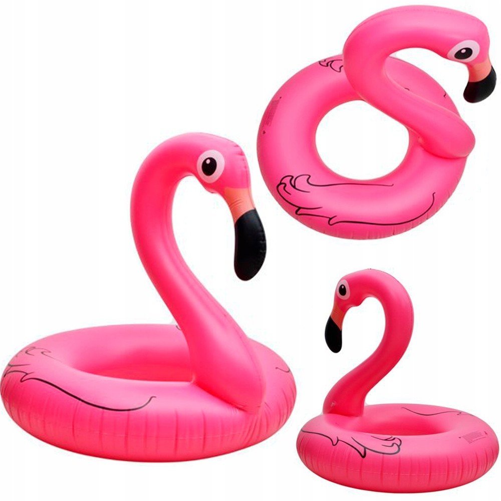 Barevné nafukovací kolo ve tvaru plameňáka plameňák, vyrobený z vysoce kvalitního plastu PVC pro dlouhou životnost.