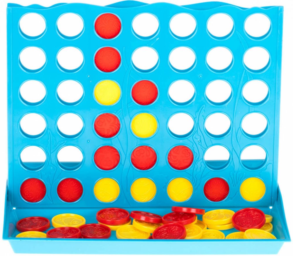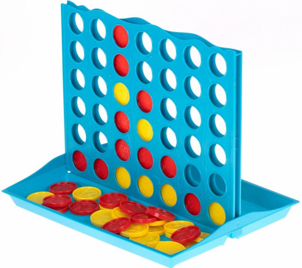 Pravidla hry:Po výběru barvy žetonů se hráči střídají v tazích tak, že umístí jeden ze svých žetonů do některého z otvorů v horní části hrací desky. Tahy se provádějí, dokud jeden z hráčů neumístí čtyři žetony v řadě (vertikálně, horizontálně nebo diagonálně).