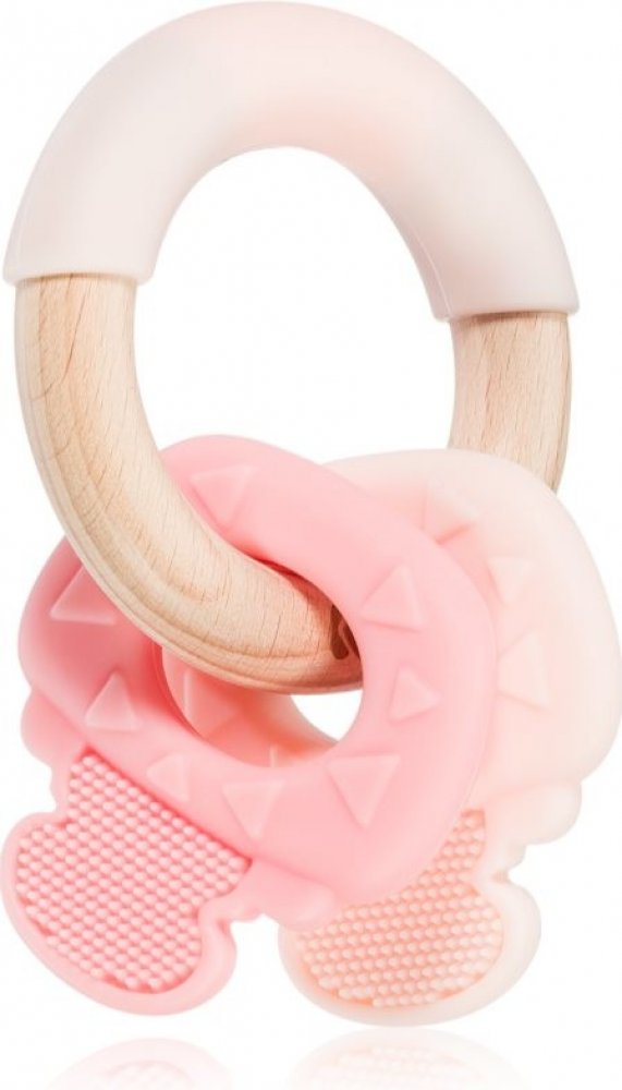 KikkaBoo kousátko silikon a dřevo Keys Pink