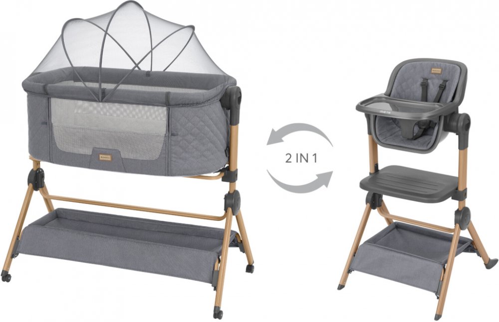 Postýlka a židlička 2v1 KikkaBoo Sleat Me nabízí praktické a stylové řešení pro rodiče, kteří hledají multifunkční vybavení s dlouhou životností. Postýlku pro miminko snadno přeměníte na jídelní židličku pro batole. Elegantní design s dřevěným vzhledem skvěle zapadne do každého interiéru. Postýlka a židlička 2v1 KikkaBoo Sleat Me nabízí praktické a stylové řešení pro rodiče, kteří hledají multifunkční vybavení s dlouhou životností. Postýlku pro miminko snadno přeměníte na jídelní židličku pro batole. Elegantní design s dřevěným vzhledem skvěle zapadne do každého interiéru.Postýlka (od narození do cca 6 měsíců, max. 9 kg):- Funkce co-sleeping – postýlku lze bezpečně připevnit k posteli rodičů- Lehký hliníkový rám s dekorem dřeva- Výškově nastavitelná do 3 poloh- Možnost nastavení náklonu proti refluxu- Sklopná bočnice pro snadný přístup- Síťované panely pro lepší cirkulaci vzduchu- Pás pro upevnění k posteli rodičů- Měkká pohodlná matrace- 4 kolečka s brzdami pro snadný přesun- Úložný prostor na hračky a doplňky- Moskytiéra pro ochranu dítěte před hmyzemJídelní židlička (pro děti do 3 let / max. 15 kg):- Vhodná pro děti, které již samostatně sedí- 5-bodový bezpečnostní pás- Jídelní pult s možností nastavení do dvou poloh- Měkká sedací podložka- 3 výškové polohy- Košík na hračky a drobnostiRozměry postýlky: 60,5 × 102 × 87,5–91,5 cmHmotnost: 9,8 kgRozměry židličky: 68 × 57 × 103–107 cmHmotnost: 7,6 kgVhodné pro děti od narození do 3 let (max. 15 kg).