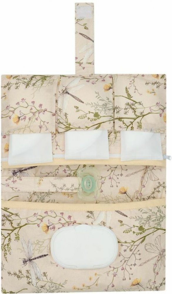Praktický cestovní organizér v krásném textilním provedení s vnitřními přehrádkami vám pomůže přehledně uložit přebalovací potřeby pro vaše miminko. Uvnitř najdete kapsu na pleny, přihrádku na vlhčené ubrousky, kapsu na zip a 3 malé kapsy na drobnosti. Organizér se snadno zapíná na suchý zip. Složení: potah 100% bavlna, výplň 100% polyester Rozměry: 25 x 18 x 2 cm