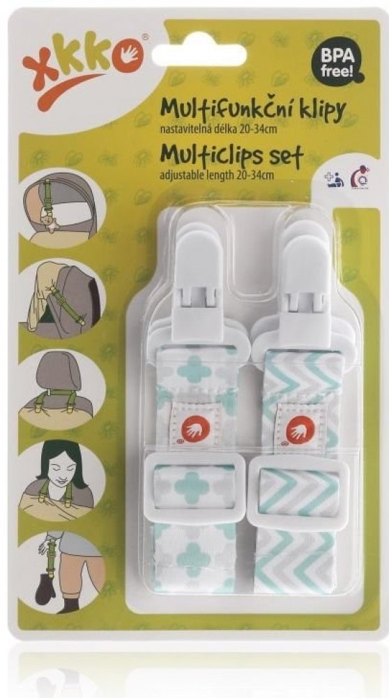 Multifunkční klipy mohou být použity k uchycení hraček, ubrousků, látkových plen, osušek deky nebo částí oblečení, prostě všude tam, kde potřebujete něco zajistit. Délku klipu je možné nastavit od 20 do 34 cm. Upozornění: Výrobek není hračka. Obal výrobku není hračka. Před každým použitím zkontrolujte kvalitu výrobku. Při prvních známkách opotřebení nebo poškození již výrobek dále nepoužívejte – v...