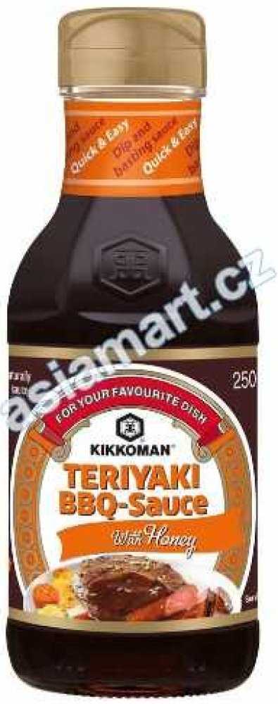 Teriyaki BBQ omáčka s medem bude vašim grilovaným pokrmům tou pravou třešničkou na dortu. Tato omáčka se ovšem nepoužívá na grilování, ale jako dip. Díky hustší konzistenci nesteče dolů a zůstane hezky tam kde má. Kikkoman Teriyaki BBQ v sobě kombinuje chuť sójové omáčky s typickou chutí barbecue omáčky. O sladší chuť se stará přidaný med. Hotový pokrm se po přelití teriykai BBQ omáčkou stane lesklým lákadlem pro vaše chuťové pohárky.