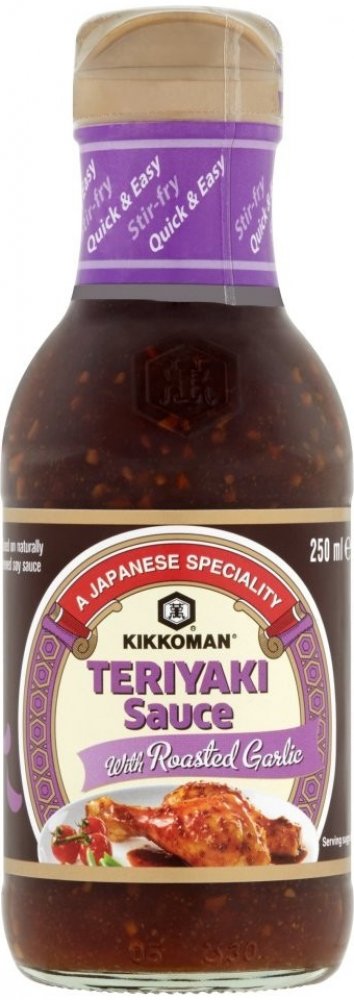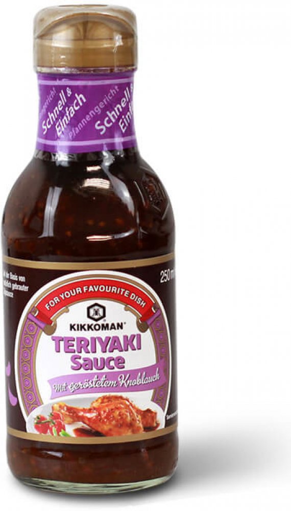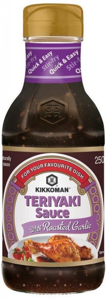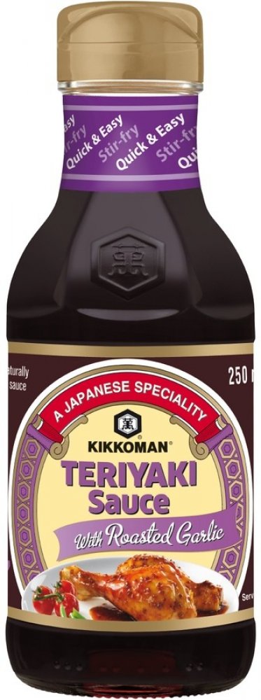 Způsob úpravy Teriyaki se používal v Japonsku především ke grilování ryb. Postupně se však rozšířil do světa a pro nové chuťové zážitky se začala tradičně používaná omáčka (směs sójové omáčky, saké, cukru či medu) různě upravovat. A tak si můžete pochutnat na pečených i grilovaných pokrmech pokaždé jinak. S Kikkoman Teriyaki omáčkou s pečeným česnekem budou pokrmy zejména vonět a jemně chutnat po česneku. Omáčku můžete použít na nakládání masa nebo ji použít do hotových pokrmů.