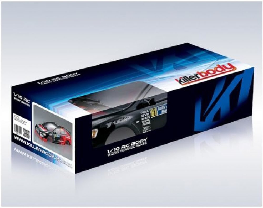 Obsahem balení je Rally karosérie pro RC modely aut 1:10 Mitsubishi Lancer EVO X od Killerbody. Obsahem balení je spousta příslušenství - masky oken, sada chromovaných dílů (přední a zadní znak, skla zrcátek, koncovky výfuků, paraboly světlometů), sada černých plastových dílů (zrcátka, stěrače, zadní křídlo, zadní difusor).