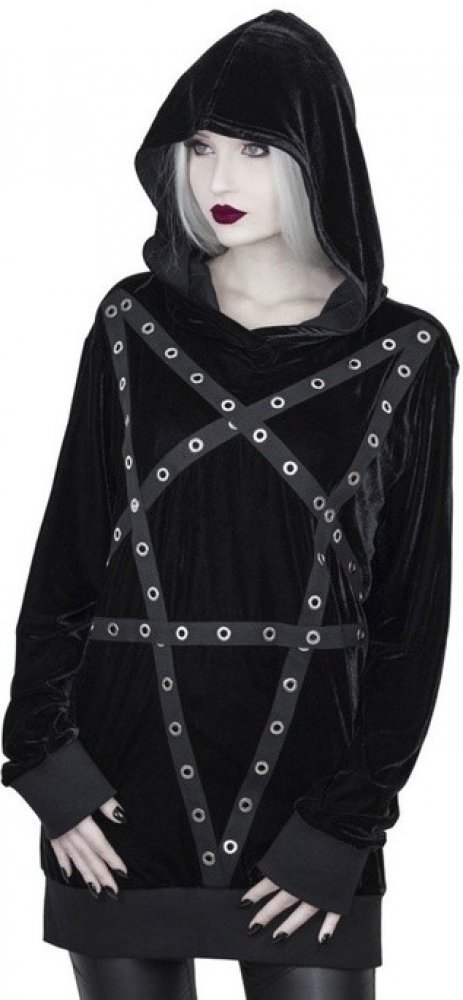 Killstar mikina s kapucí Wicca Velvet černá