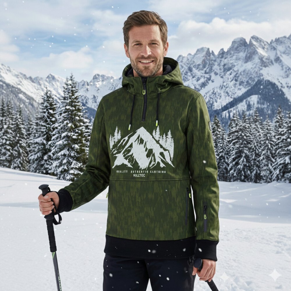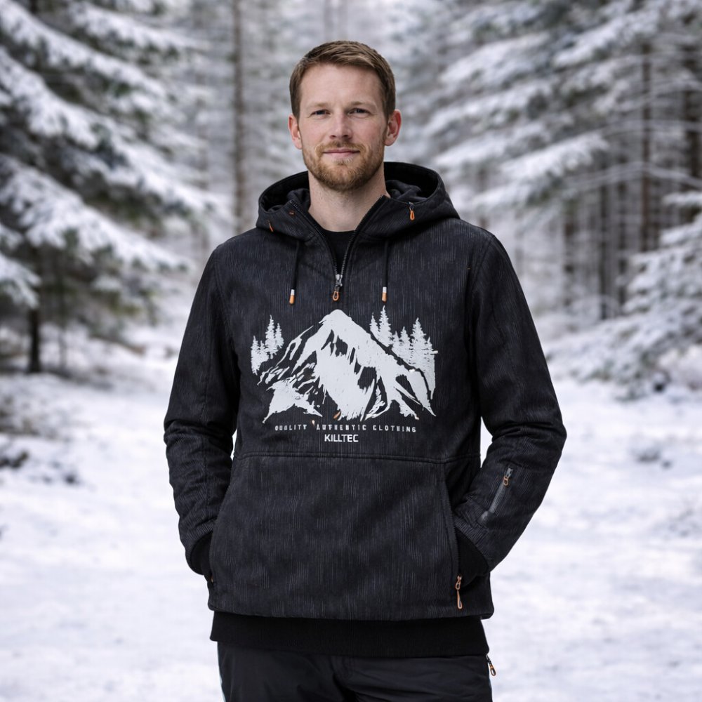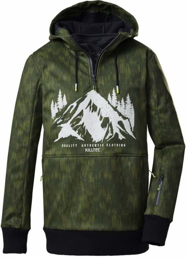 Pánská zimní bunda Killtec 124 je vyrobena z lehkého a příjemného materiálu. Na přední straně najdete jednu klokaní kapsu a a jednu kapsu na skipass na levém předloktí. Jelikož je bunda přes hlavu, tak na straně najdete hlavní zip, díky kterému se usnadní oblékání i svlékání. Rukávy a spodní lem jsou zakončeny příjemnou, textilní manžetou.