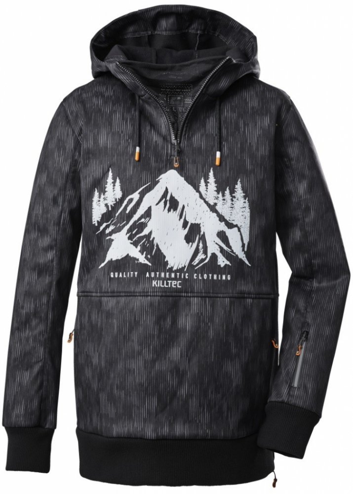 Pánská zimní bunda Killtec 124 je vyrobena z lehkého a příjemného materiálu. Na přední straně najdete jednu klokaní kapsu a a jednu kapsu na skipass na levém předloktí. Jelikož je bunda přes hlavu, tak na straně najdete hlavní zip, díky kterému se usnadní oblékání i svlékání. Rukávy a spodní lem jsou zakončeny příjemnou, textilní manžetou.