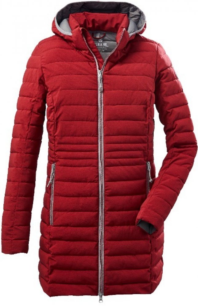 Dámský prošívaný kabát Killtec Bacarya je vyrobený z voděodpudivého, větruodolného, ultralehkého a strukturovaného materiálu. Má hřejivou výplň, polopřiléhavý střih, dekorativní prošití, odepínací kapuci lemovanou gumou, ochrannou krytku u brady a 2 vnější kapsy se zipy. Zdobí ho moderní melírovaný design. Kabát je vhodný pro každodenní nošení od podzimu do jara.