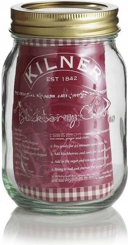 Slavná sklenice firmy Kilner je odolná a praktická a má jednoduše použitelná dvoudílná kovová šroubovací víčka. Lze mýt v myčce nádobí a je ideální pro zavařeniny, džemy a nakládanou zeleninu, stejně jako suché potraviny, jako je rýže, cukr nebo mouka.
