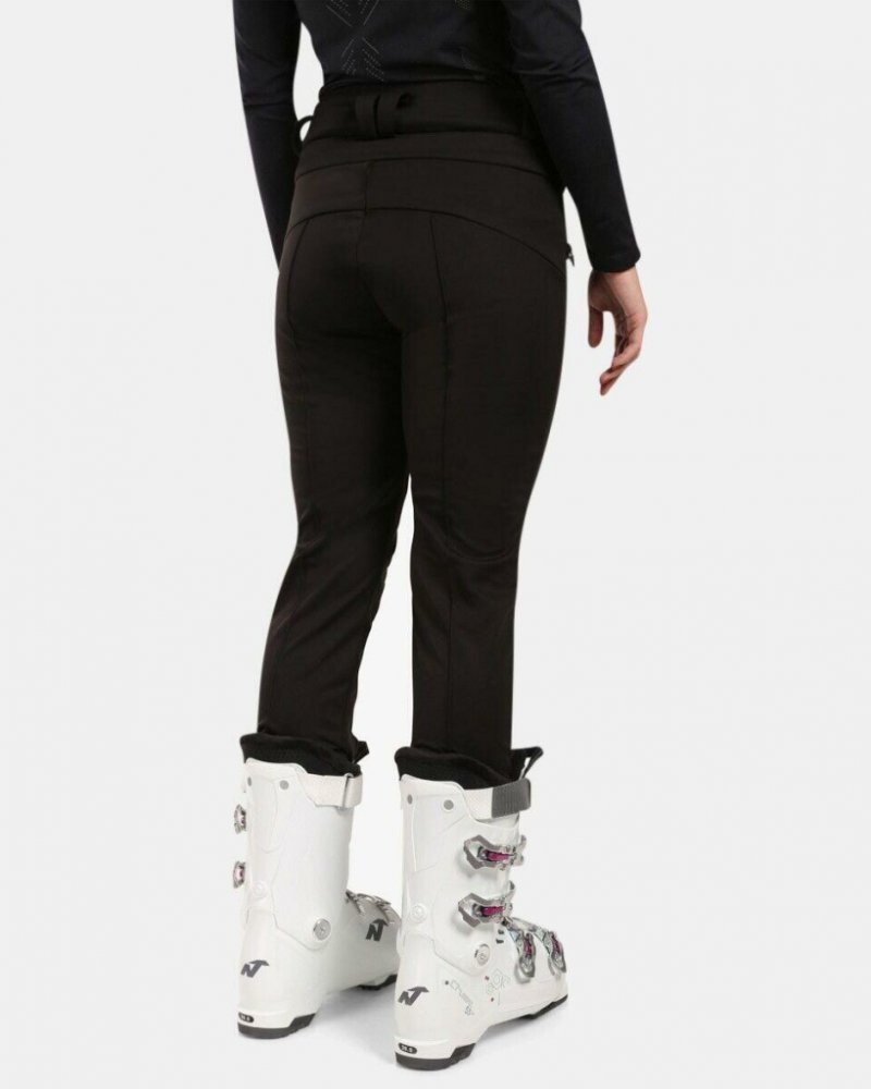 Dámské softshellové kalhoty Kilpi MAURA-W jsou elegantní lyžařské legíny pro moderní ženu, která chce vypadat stylově i na sjezdovce. Membránový elastický softshell je příjemně hřejivý a částečně voděodpudivý. Díky gumové manžetě pod chodidlem se kalhoty při lyžování nevyhrnují. Universální černý design je zvýrazněn lesklými zipy a kovovým knoflíkem.