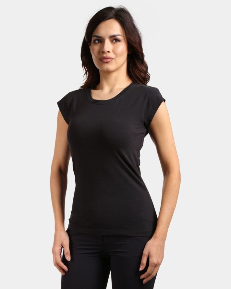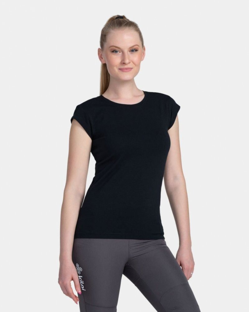 černá Kilpi s krátkým rukávem regular fit s kulatým výstřihem 95% bavlna 5% elastan jednobarevná