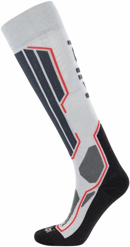Sportovní podkolenky kilpi racer-u jsou vyrobeny z lehkého prodyšného úpletu ze směsi vlny merino a syntetických vláken. Tato kombinace materiálů je vhodná pro sporty s vysokou intenzitou zátěže jako například lyžování nebo skialpinismus. Různé druhy úpletů jsou rozmístěny podle funkčních zón k dosažení maximálního pohodlí. Přirozenou vlastností vlny merino je, že dokáže neutralizovat pot a tím eliminovat nepříjemné pachy a přirozeně odpuzuje nečistoty. Vlákna polyamidu zvyšují pevnost ponožky v tahu a odolnost vůči oděru. Podíl elastanu zaručuje dostatečnou pružnost ponožek. Zesílená zóna na holeni eliminuje otlaky z lyžařské obuvi, plyšová oblast paty a špičky je odolná vůči oděru, strukturovaná prodyšná zóna kolem nártu pomáhá odvádět vlhkost. Horní lem ponožky je dostatečně pružný, široký a netlačí. Podkolenky kilpi racer-u naleznete v nabídce ve dvou sportovních barevných provedeních. Materiál: 55% polyamid, 28% polyester, 12% merino, 4% polyurethan, 1% elastan
