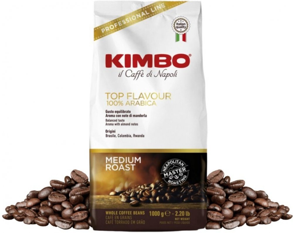 Kimbo Espresso Top Flavour 100% Arabica zrnková káva 1kg je ideálním společníkem pro chvíle klidu a pohody. Každý doušek přináší teplo, energii a radost, které zpříjemní každý den.