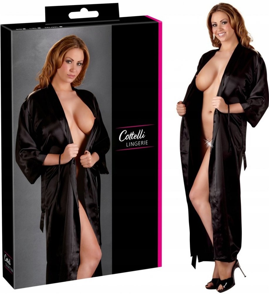 Chcete se cítit jako mocná bohyně? Oblékněte si dlouhé saténové kimono od Cottelli Collection, ve kterém budete naprosto neodolatelná. Kimono je ušito z lehké a na dotek příjemné látky v designu lesklého saténu. Má tříčtvrteční rukávy a pásek pro uvázání kolem pasu. Jeho střih lichotí i větší postavě.