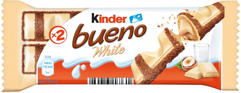 Oplatka s mléčnou a lískooříškovou náplní (53%) v polevě z bílé čokolády. Složení : Bílá čokoláda 28% (kakaové máslo, cukr, odtučněné sušené mléko (23%), máselný tuk, emulgátor: lecitiny (sójové); vanilin), Cukr, Palmový olej, Pšeničná mouka, Odtučněné sušené mléko (8,5%), Plnotučné sušené mléko (5,5%), Lískové oříšky (5%), Sušená syrovátka (z mléka), Pšeničný škrob, Kakaový prášek se sníženým obs...