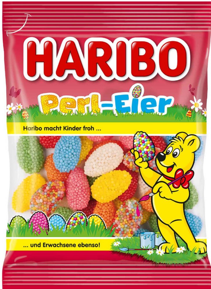 Velikonoční směs želé s cukrovou perleťovou vrstvou, 6 druhů Lahodné perleťové vajíčka Haribo zajišťují barevnou velikonoční náladu. Ovocná poloviční vejce z jemného želé jsou zabalena do křupavých cukrových perel a dopřejí vám šest příchutí citronu, pomerančové šťávy, černého rybízu, jahod, malin a meruněk. Barevná perleťová vejce se nejen dobře hodí do velikonočních hnízd - jsou také ideální jak...