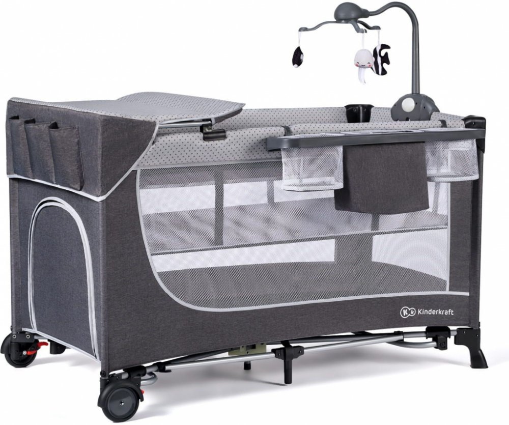 Kinderkraft Cestovní postýlka Leody 2023 s doplňky šedá