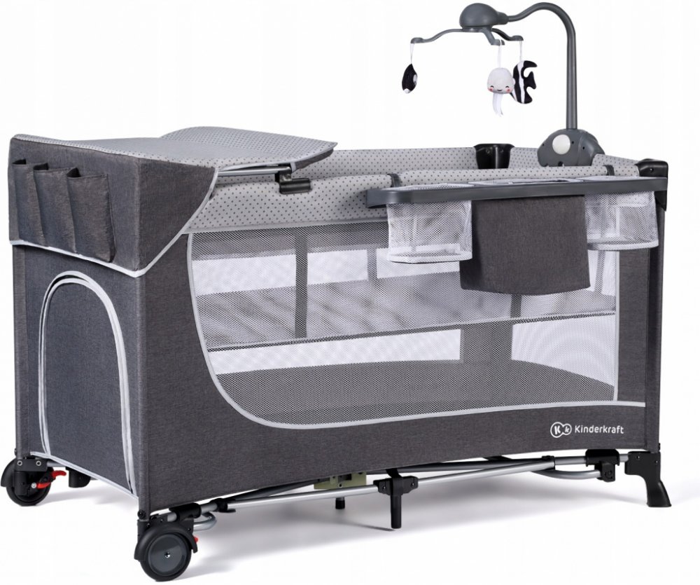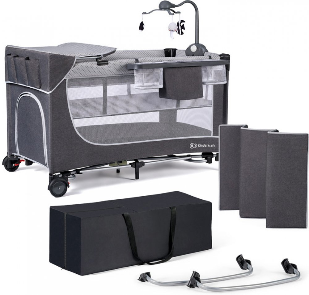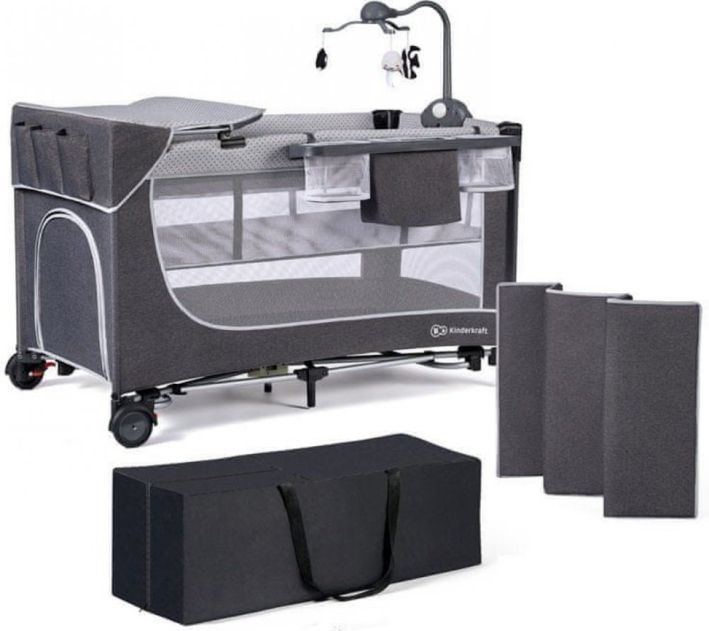 Kinderkraft Cestovní postýlka Select Leody Premium s doplňky šedá