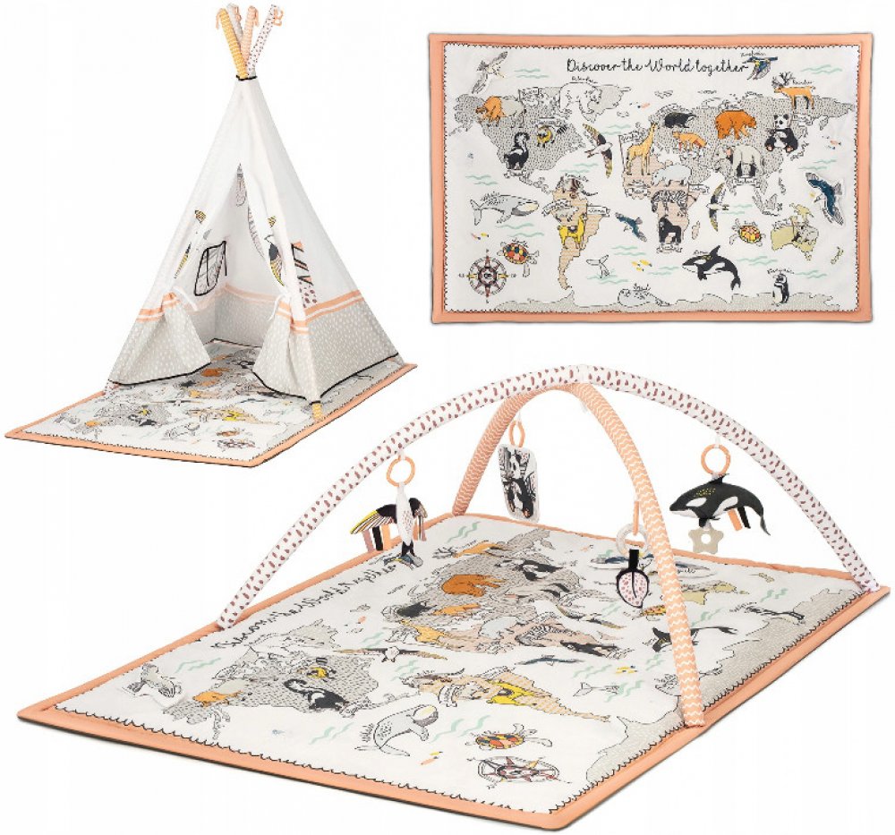 Hrací deka TIPPY 3v1 je jedinečná deka s krásným vzorem, kterou lze používat 3 způsoby: jako deka s hrazdičkou pro nejmenší děti (od narození do 1 roku), deku se stanem pro starší děti (do 5 let) a jako samostatná deka pro venkovní použití během teplých dnů. Je větší než standardní deka, takže bude sloužit vašemu dítěti déle.