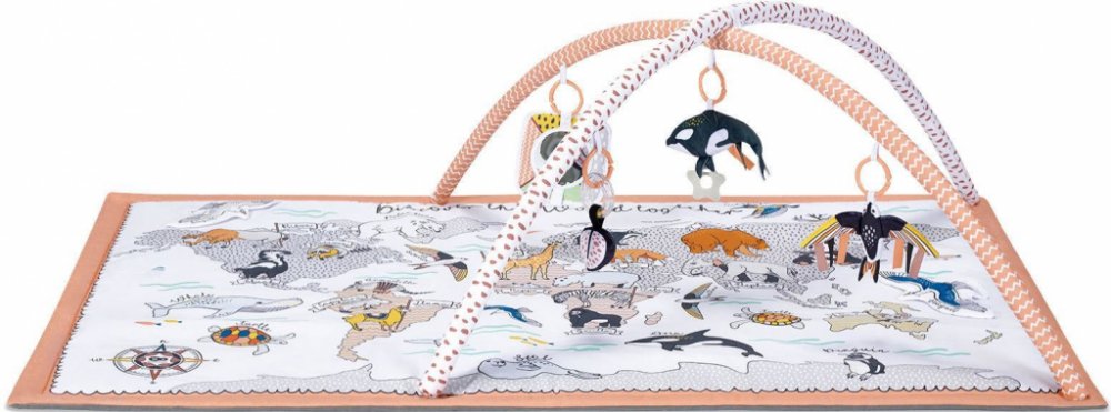 - navíc baví a učí: na podložce jsou vytištěny kontinenty a obývající je zvířata, kterých názvy jsou uvedeny v angličtině.
