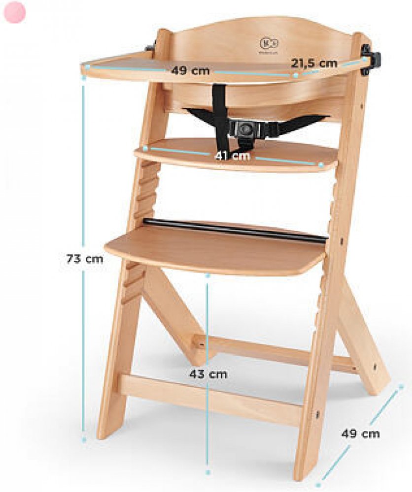 - Tříbodové bezpečnostní pásy ve vysoké židli, které lze snadno demontovat při přeměně ENOCK na židli pro starší děti.