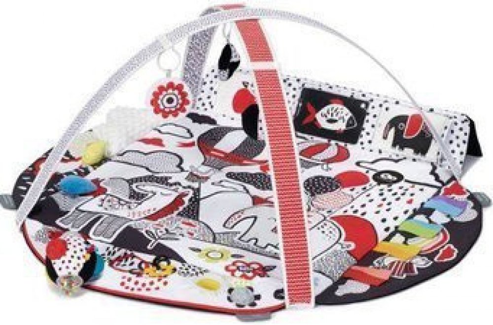 1. zóna rozvíjí zrak: skládá se z kontrastních barev – černé, bílé a červené se žlutými akcenty. Má barevné pruhy, které přitahují pozornost dítěte a usnadňují mu rozeznávání barev.