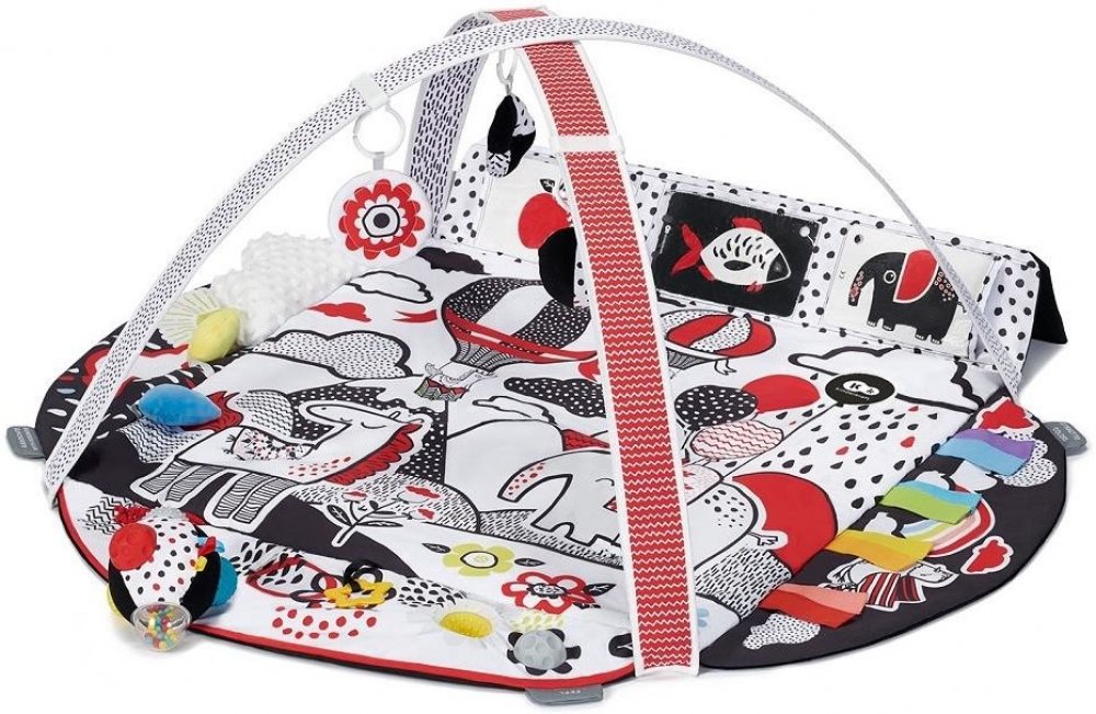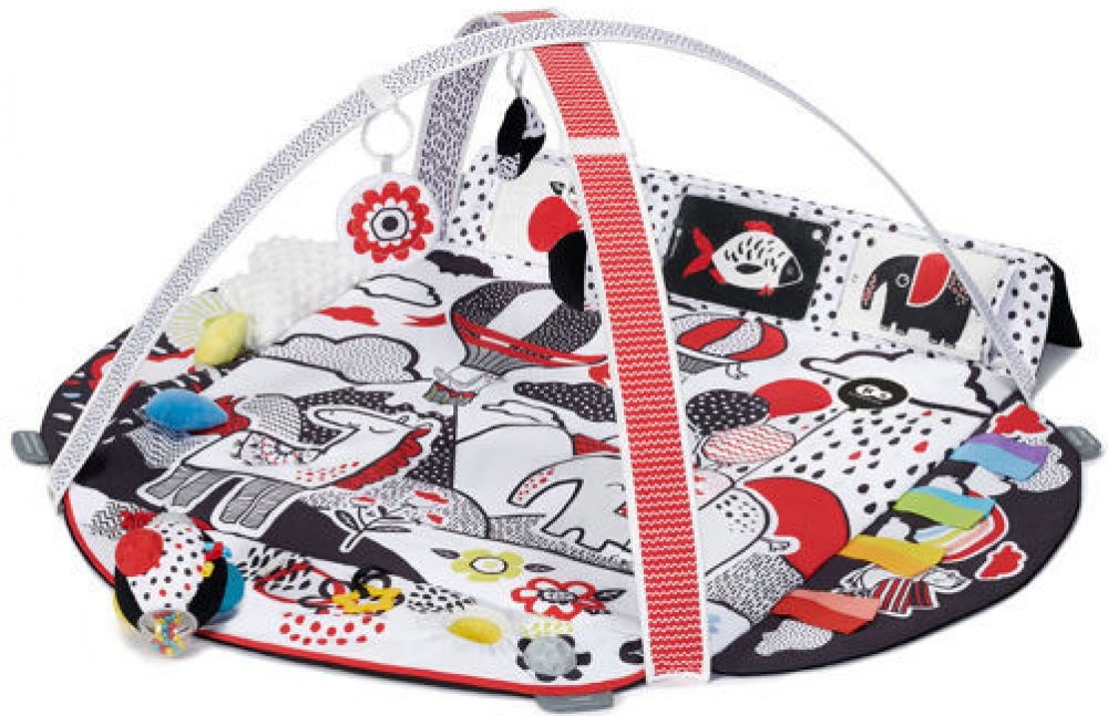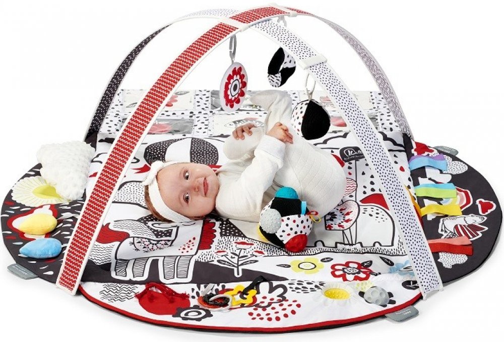 Kontrastní hrací deka 4SMART se 4 senzorickými zónami podporujícími vývoj dítěte je určena pro děti od prvních měsíců života. Děti v počátečním období svého života vidí pouze kontrastní barvy. Abychom povzbudili představivost dítěte a podpořili jeho vývoj od prvních měsíců, vytvořili jsme hrací deku 4SMART s výraznými, kontrastními barvami. 4SMART má 4 zóny, které rozvíjejí zrak, hmat, sluch a poz...