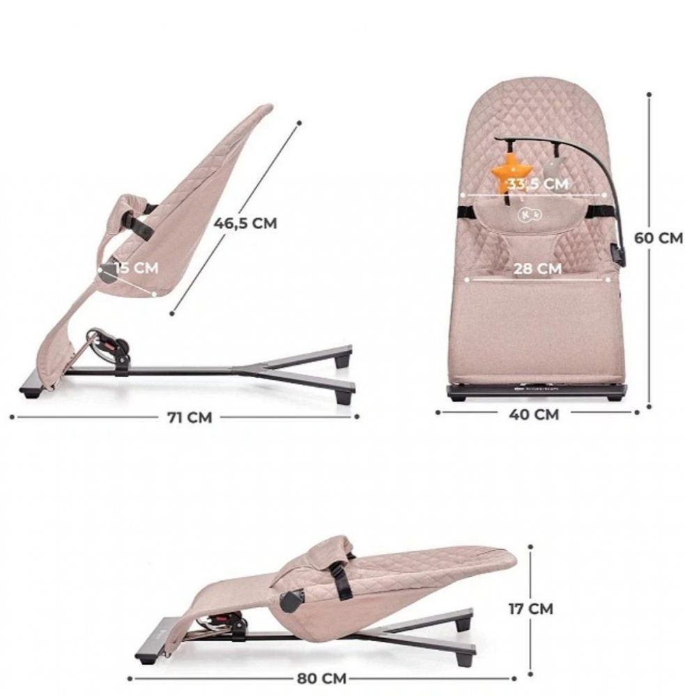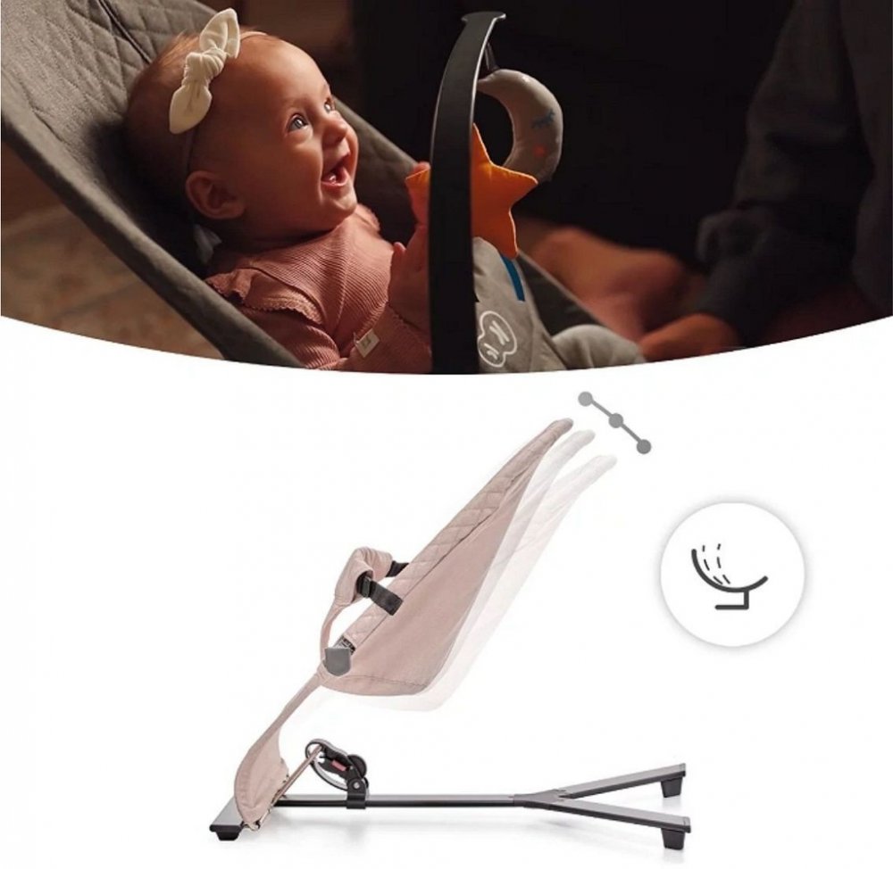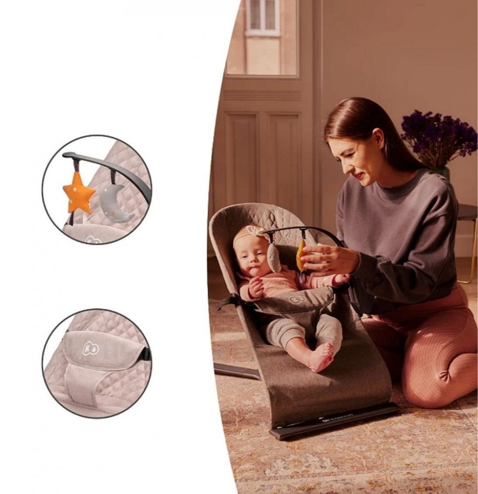 Lehátko MIMI přináší čistý minimalismus, uzavřený v překrásné formě. Je to bezpečí, pohodlí a elegance v jednom. Pomůže zklidnit Vaše dítě i během velmi neklidných dnů a zároveň jej nebude příliš stimulovat. A když si bude chtít hrát – bude mít k dispozici 2 závěsné hračky. Žádná světýlka ani hlasité zvuky. Díky třístupňovému nastavení opěradla lehátko snadno přizpůsobíte potřebám dítěte. Ideálně uzpůsobená sedačka z příjemné látky rovnoměrně rozkládá váhu dítěte a podporuje přirozenou polohu během odpočinku.