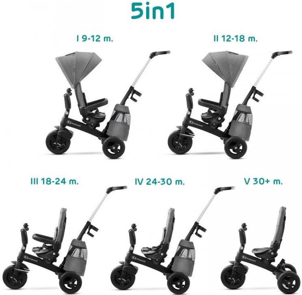 - učení prostřednictvím hry už od 9 měsíců - děti chtějí být nezávislé a získat nové dovednosti. Tříkolka jim dává tuto příležitost, protože má funkci „volného kola", která umožňuje batolatům naučit se bezpečně šlapat bez pohybu kola.