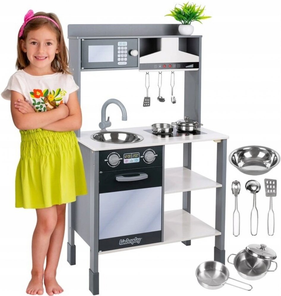 KINDERPLAY DŘEVĚNÁ KUCHYŇKA PRO DĚTI INTERAKTIVNÍ DIGESTOŘ PŘÍSLUŠENSTVÍ 100 cm