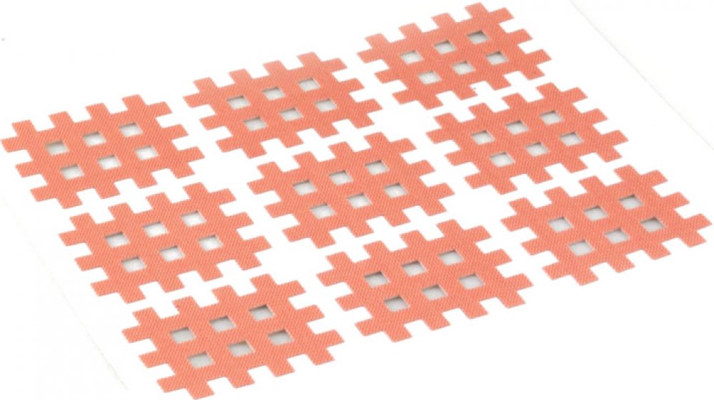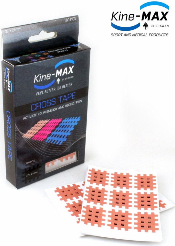 Kine-MAX Cross Tape (křížový tejp) je hedvábně jemná, neelastická, síťovaná páska ve tvaru mřížky.
