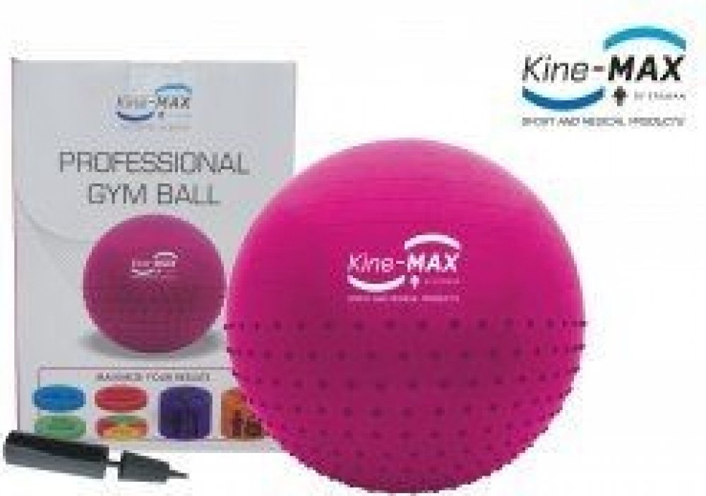 Kine-MAX GYM BALL je profesionálním pomocníkem pro kondiční cvičení, posilovací cvičení, jógu a rehabilitaci. Míč je z jedné poloviny opatřen masážními/reflexními výstupky. Míč je vyroben z vysoce kvalitních a odolných materiálů, využívá technologii ANTI-BURST a je protiskluzový. Maximální zatížení míče je 250Kg. Je vhodný pro všechny uživatele do výšky 185 cm. Míč je dodáván s kvalitní pumpičkou pro snadné nafouknutí. Kine-MAX GYM BALL je ideálním pomocníkem pro udržení zdravé fyzické kondice.