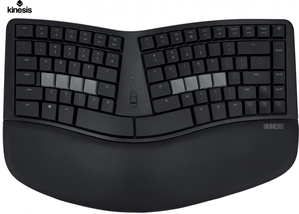 - Integrované nastavení sklonu: Nastavení sklonu zvedá palcovou stranu ruky pro snížení pronace předloktí, které způsobuje běžná plochá klávesnicemi.
