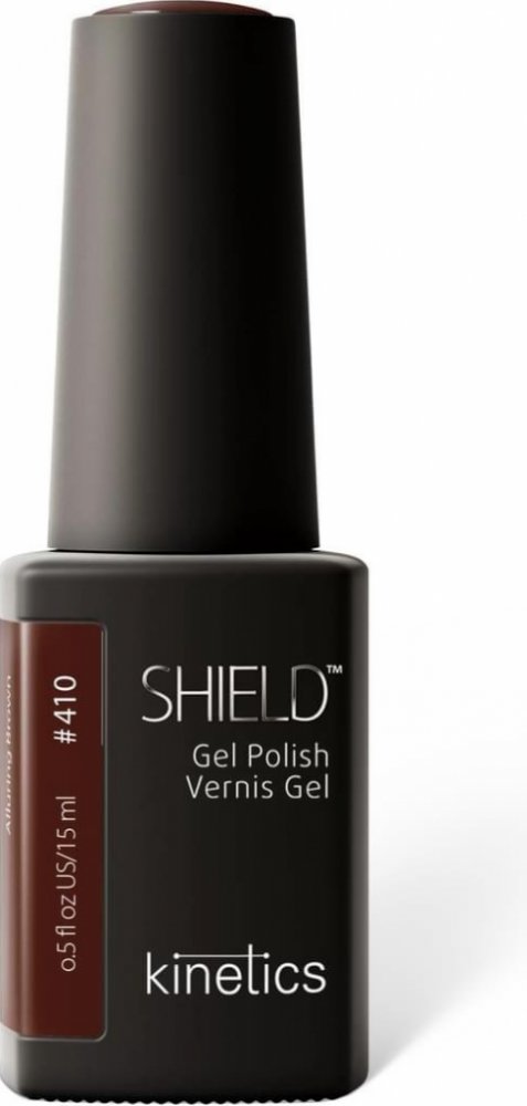 KINETICS Gel lak - SHIELD - Alluring Brown #410 - 15 ml SHIELD Gel Polish je profesionální 3-krokový vysoce pigmentovaný profesionální gel lak se širokou barevnou škálou. Systémy gelových laků jsou speciálně navrženy pro vytvrzení pod UV/LED lampami, což zajistí velmi odolný povlak. Je mnohem odolnější než tradiční systémy laků na nehty, proto gel lak vydrží na nehtech až 3 týdny. Přesná doba noše...