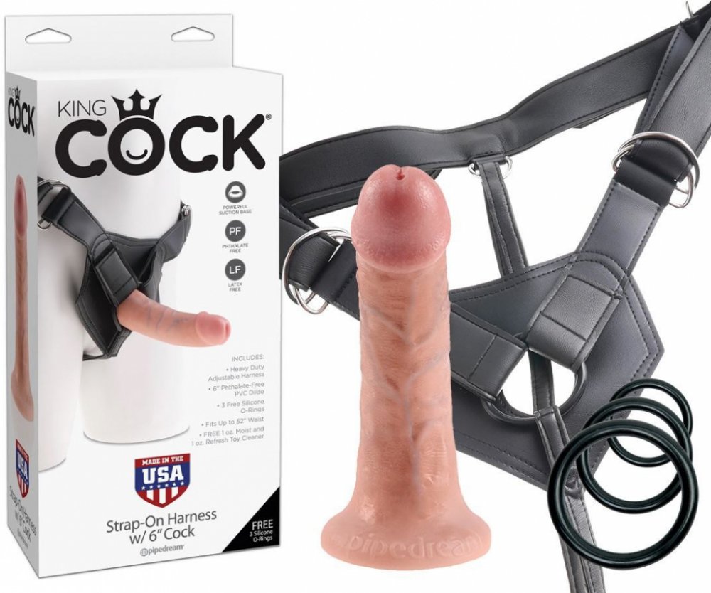 Připínací penis King Cock velikosti S je vhodný i pro začátečníky.