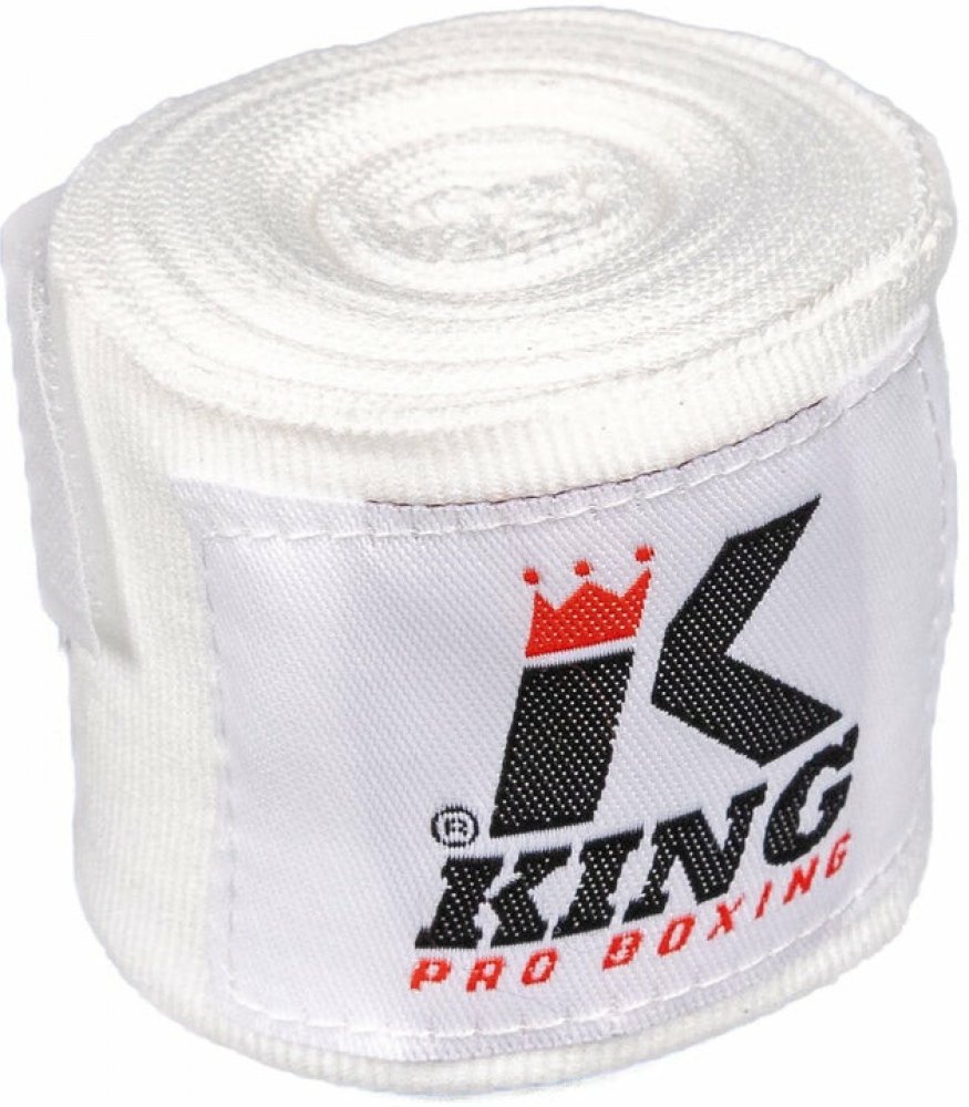 King Pro Boxing bandáže Tyto bandáže od značky King Pro Boxing poskytují skvělou ochranu a podporu rukou během tréninku i zápasů. Vyrobené z kvalitní směsi polybavlny jsou měkké, prodyšné a pohodlné, zároveň odolné vůči opotřebení.Délka 460 cm zajistí dostatečné krytí zápěstí, kloubů a palce, přičemž elastický design umožňuje pevné a přesné obalení. Bandáže efektivně snižují riziko zranění a zvyšují stabilitu rukou i zápěstí, ať už trénujete nebo bojujete v ringu. Zlepšete svůj výkon s King Pro Boxing – pohodlí, podpora a bezpečí na každém kroku!