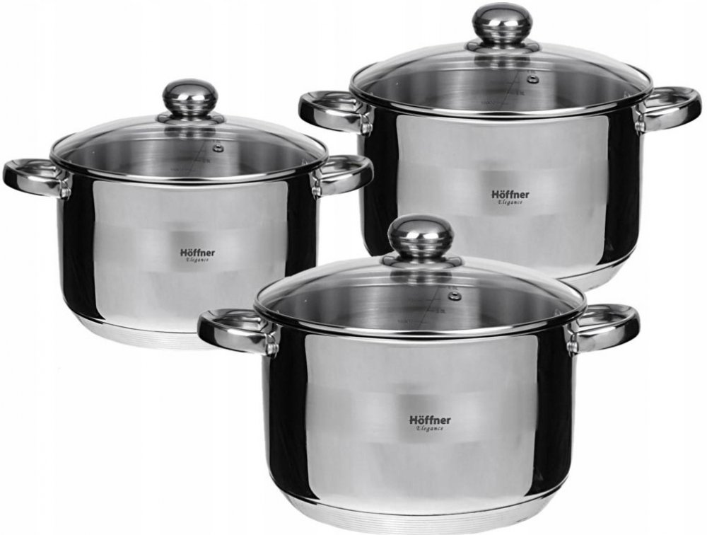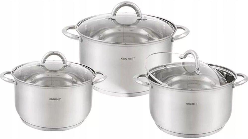 TRADIČNÍ OCELOVÉ HRNCE KINGHOFF SADA HRNCŮ 3 KS INDUKČNÍ PLYNVlastnosti
