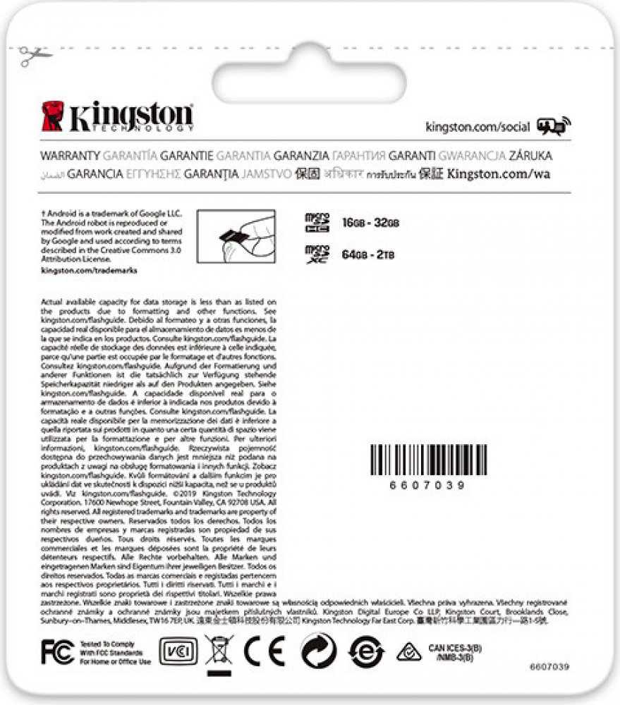 128 GB Kingston microSD 170 MB/s 90 MB/s Class 10 UHS-I U3 V30 A2