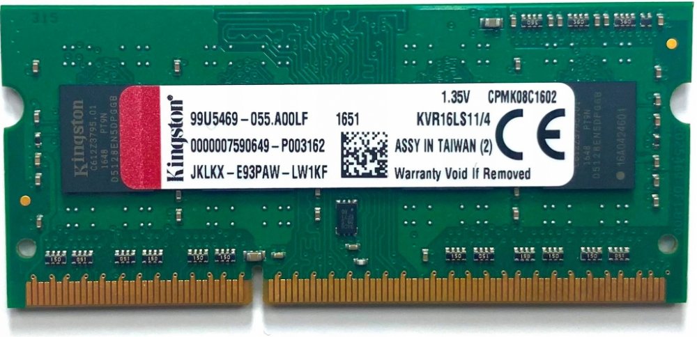 Technologie paměti RAM:SODIMM DDR3; Kapacita paměti RAM:4 GB; Frekvence paměti RAM (v MHz):1600; CAS latency:11