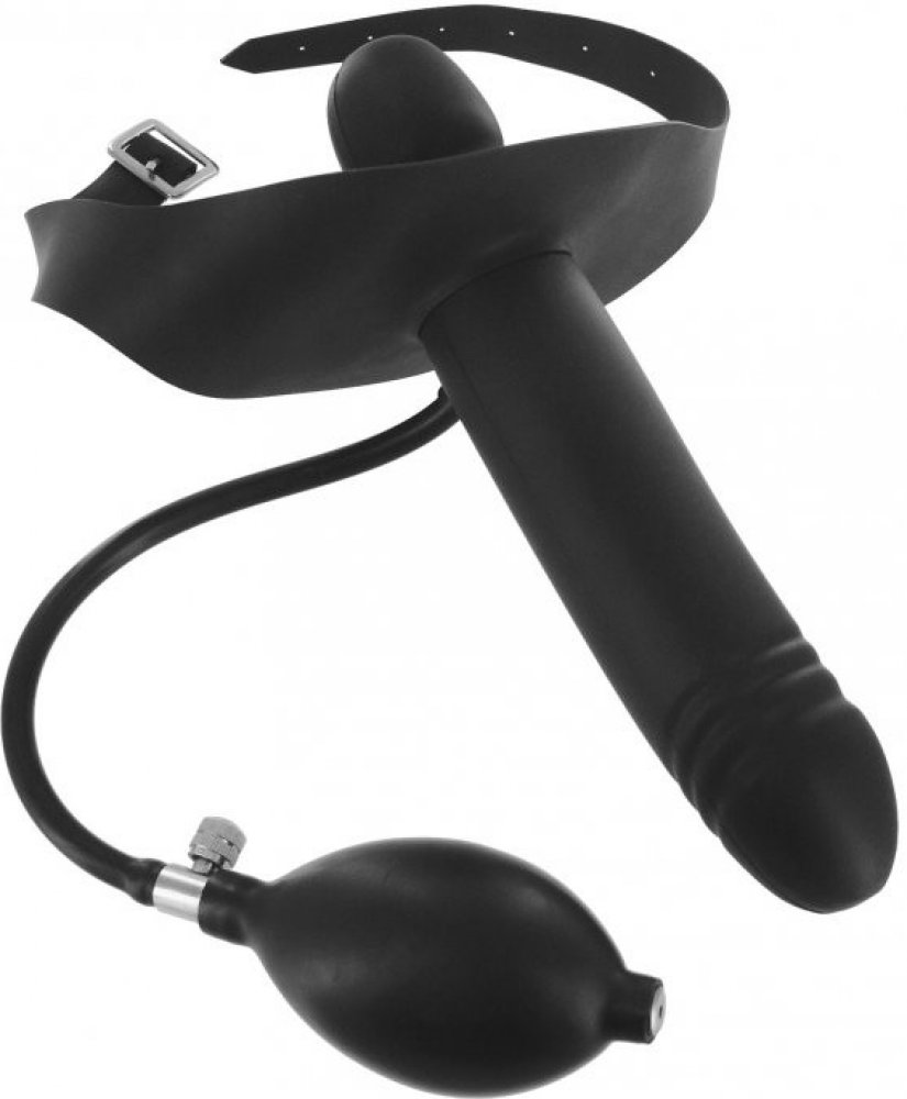 Tento nafukovací roubík s dildem, vyrobený tak, aby sloužil dvěma funkcím najednou a ud