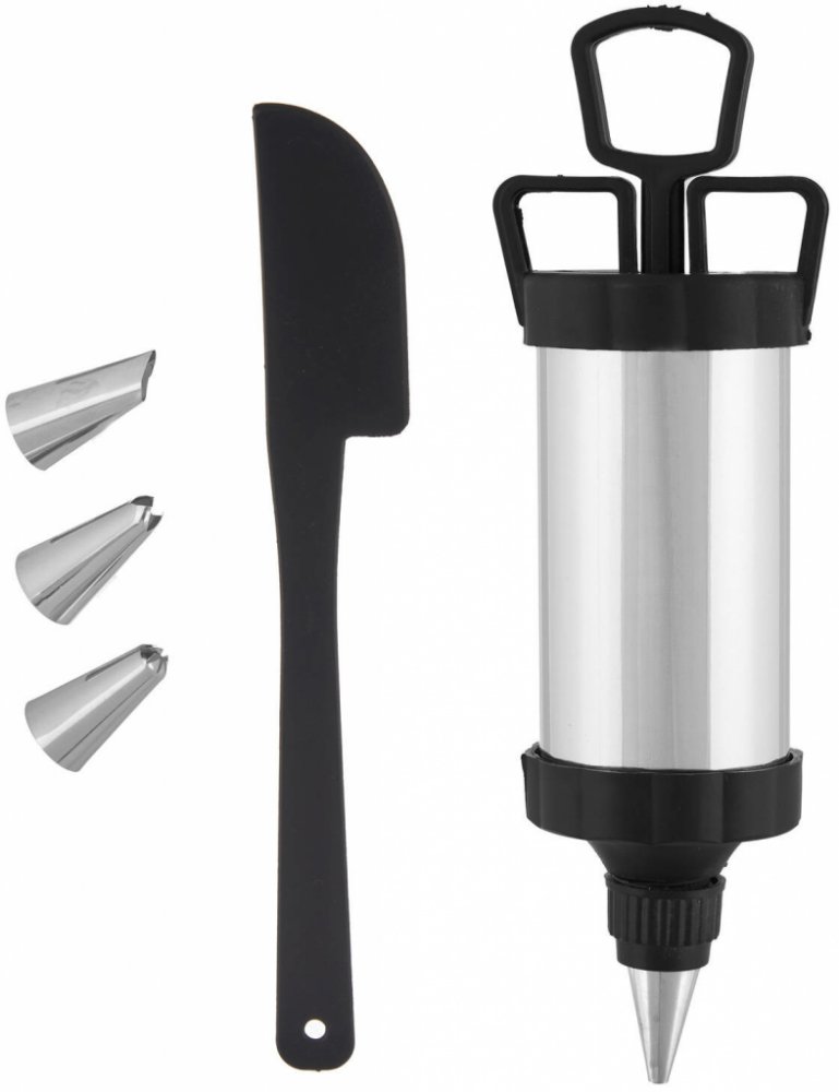 Krémová stříkačka se 4 nástavci pro precizní nanášení Pohodlná aplikace: Krémová stříkačka je vybavena 4 různými nástavci, které umožňují snadné a precizní nanášení krémů a dekorací na dorty a dezerty. Odolné materiály: Vyrobena z vysoce kvalitního kovu a plastu, zajišťující trvanlivost a snadnost čištění. Funkční design: Díky ergonomickému tvaru a pohodlné rukojeti je stříkačka snadno použitelná ...